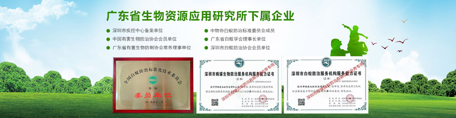 深圳市程建白蟻防治中心有限公司(深圳市白蟻防治中心、深圳市殺白蟻公司、滅白蟻公司、治白蟻公司、除白蟻公司、防白蟻公司、深圳市消殺公司、深圳市殺蟲公司)、于二00二年十一月成立。是經(jīng)深圳市政府有關(guān)部門批準(zhǔn),市工商行政管理局注冊登記的法人企業(yè),深圳市蟲鼠防治協(xié)會(huì)(PCO)成員單位,持有政府部門頒發(fā)“白蟻防治服務(wù)機(jī)構(gòu)服務(wù)能力證書B級”、“有害生物防制服務(wù)機(jī)構(gòu)服務(wù)能力證書B級”雙資質(zhì)證書的有害生物防治單位。公司主要服務(wù)政府、事業(yè)、企業(yè)、工廠、賓館、園林、小區(qū)、大廈等單位的白蟻防治、有害生物防制施工的專業(yè)機(jī)構(gòu)。技術(shù)力量雄厚,擁有各層次專業(yè)技術(shù)人員三十多名。